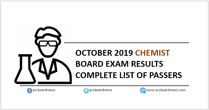 MANILA, Philippines – The Professional Regulation Commission (PRC) and the Board of Chemistry released results of October 2019 Chemist board exam on Monday, October 14, 2019 or in two (2) working days after the exam. The complete list of passers, topnotchers (top 10), top performing schools and performance of schools are available here as announced online.